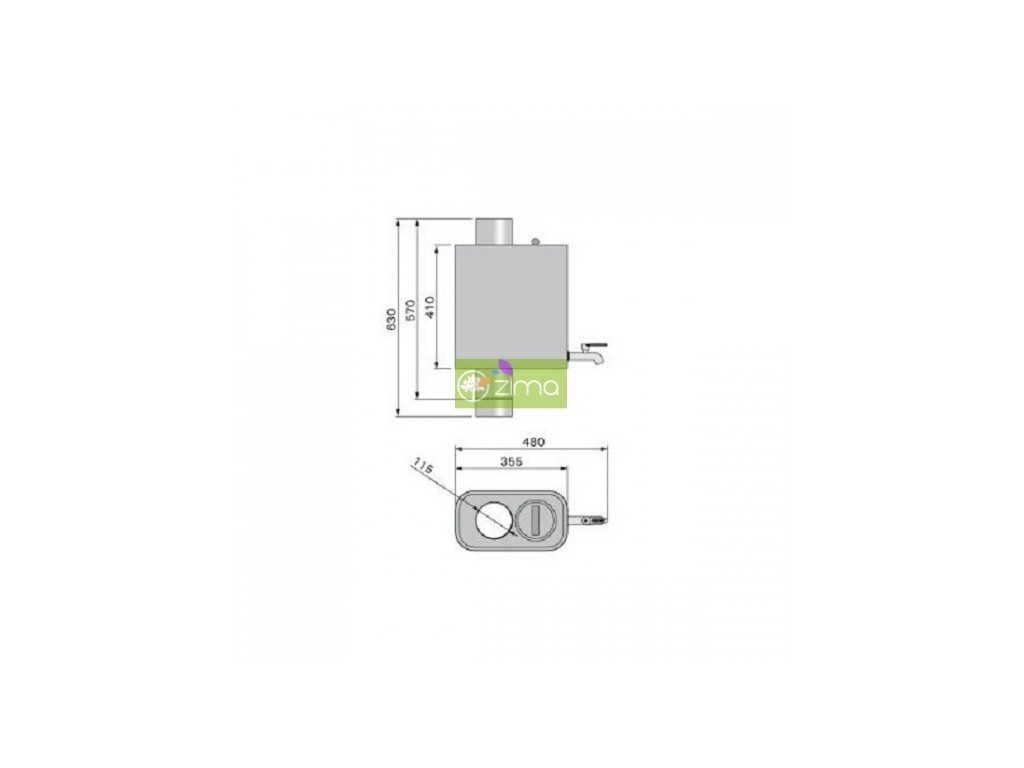 Le réservoir d'eau chaude de 22 ltr est montée directement sur la poêle. L'eau s'échauffe rapidement en passant par les sisteme tube qui se passe à travers le réservoir et fonctionne comme une partie de la liaison du conduite de fumée.