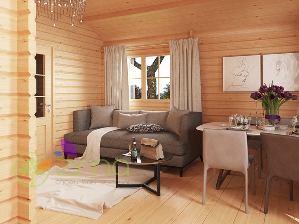 Chalet Nancy 70mm 21,85m2 + mezzanine 20m2 au sol, mur en madriers 70 mm