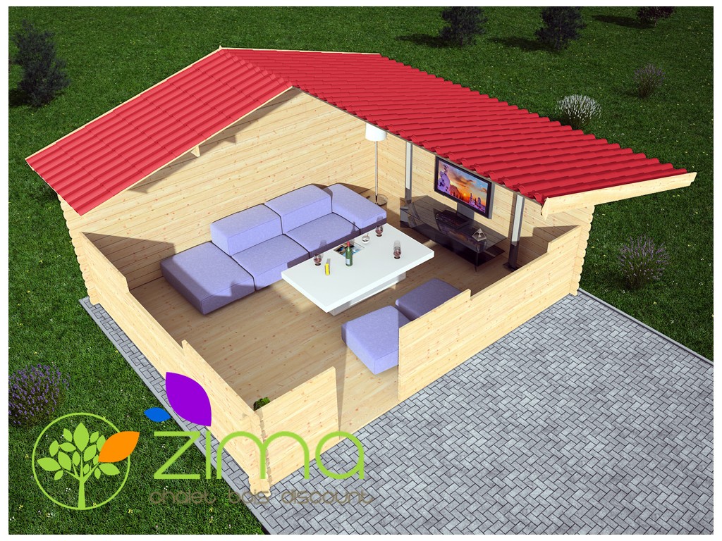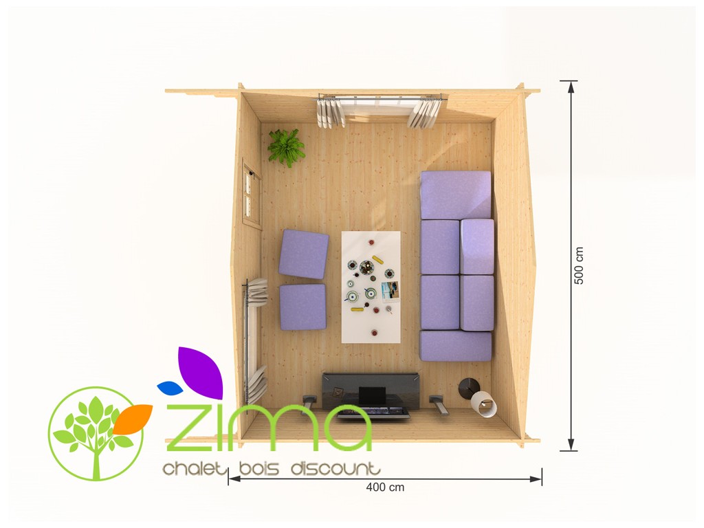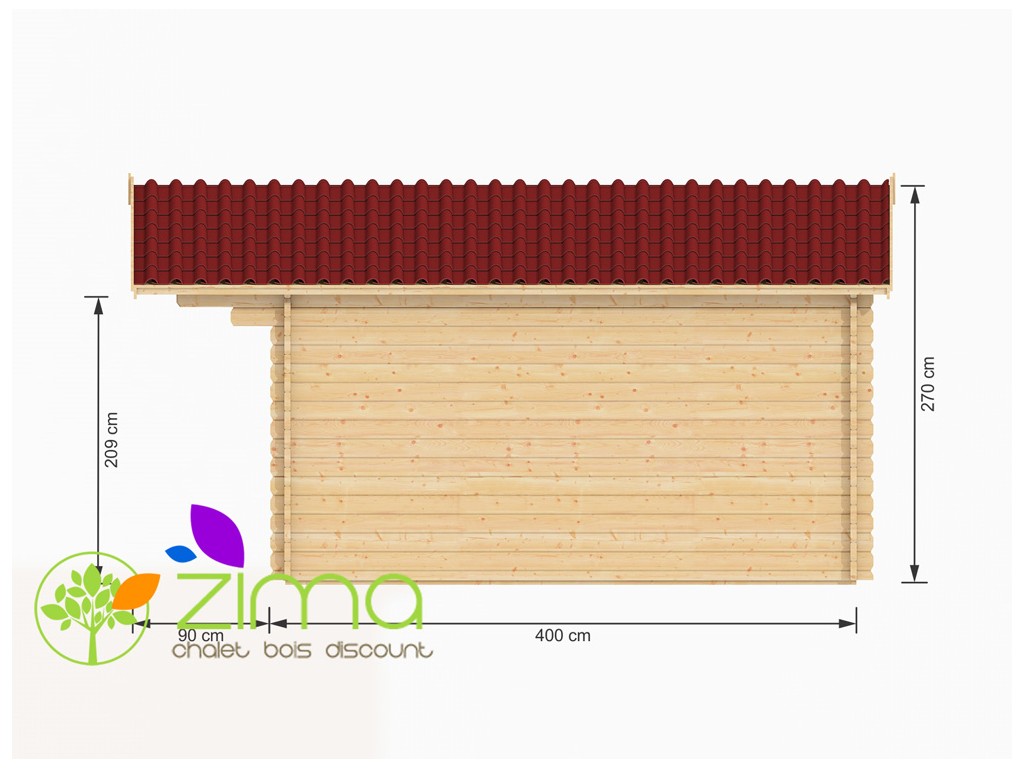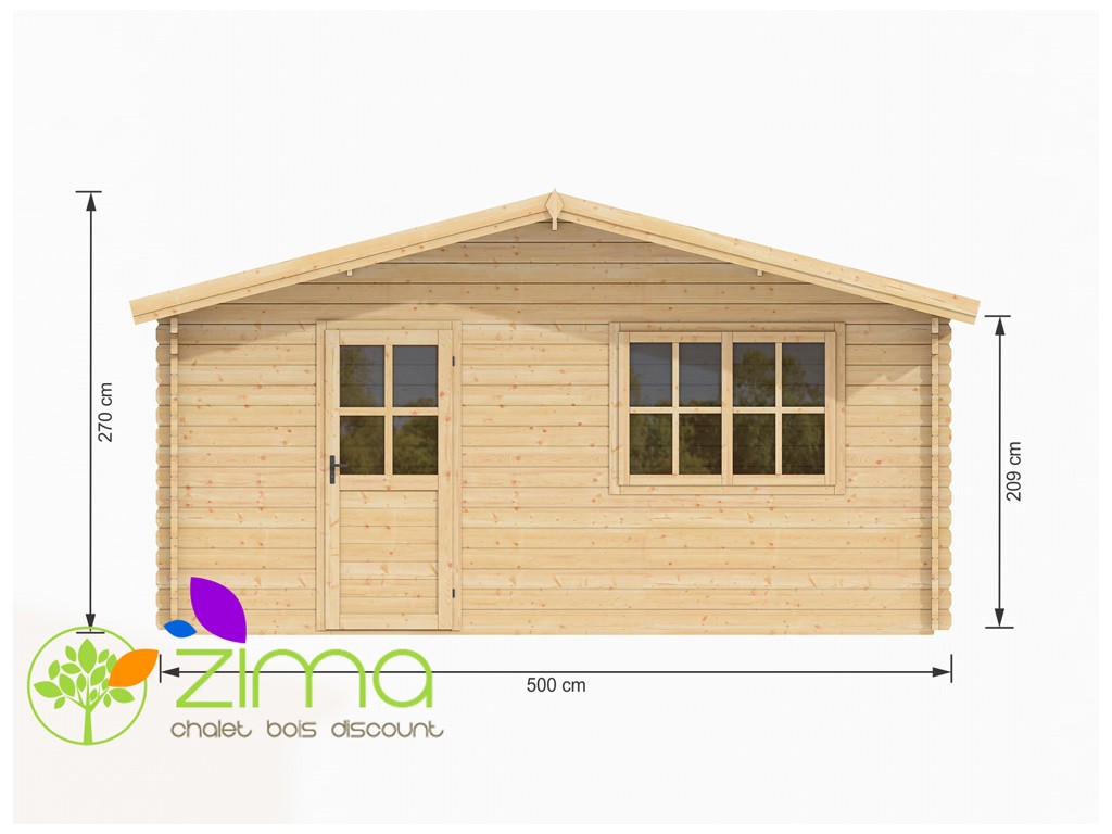 Chalet Nancy 70mm 21,85m2 + mezzanine 20m2 au sol, mur en madriers 70 mm