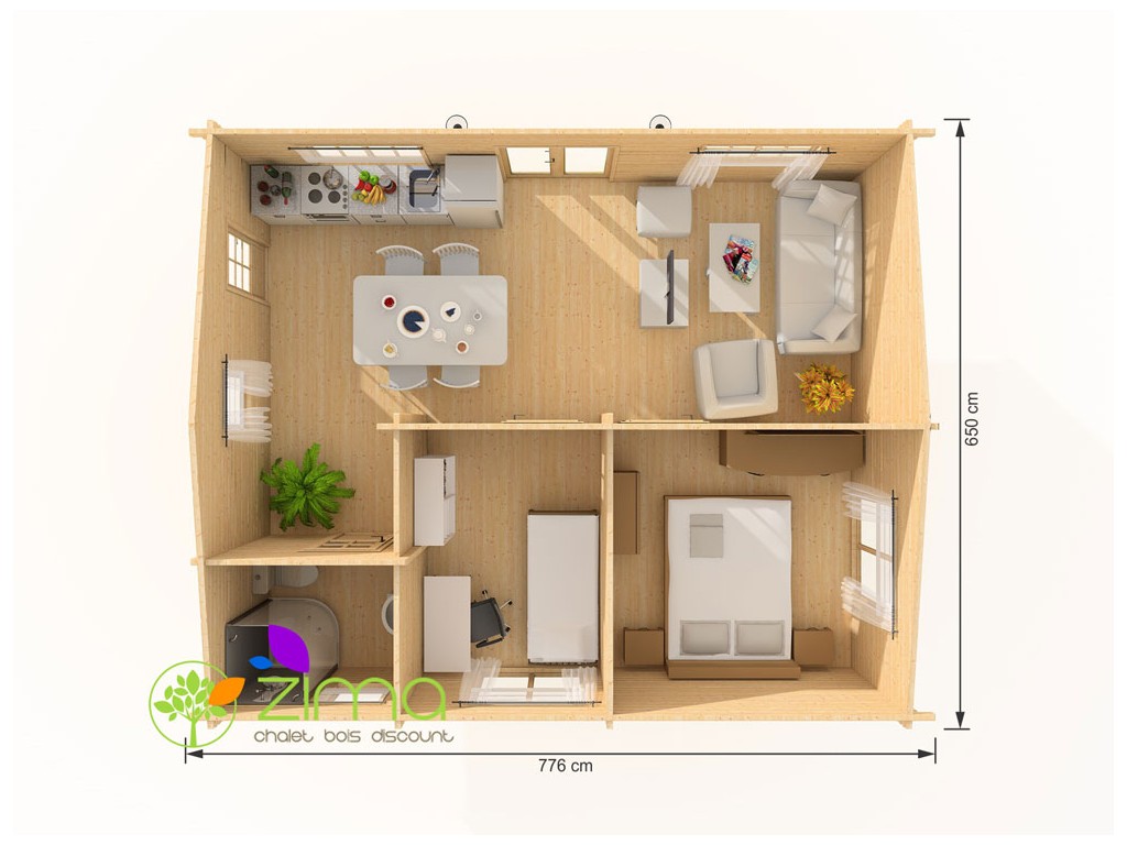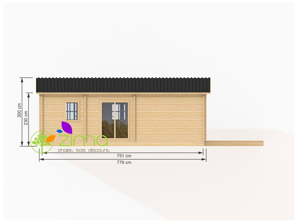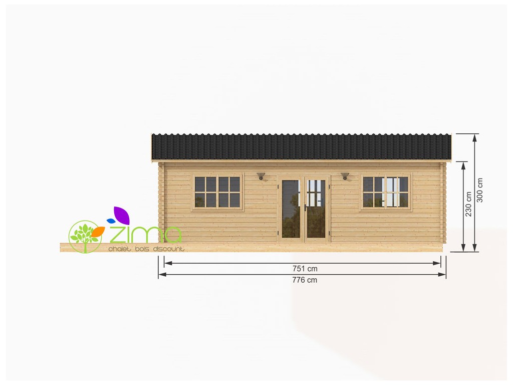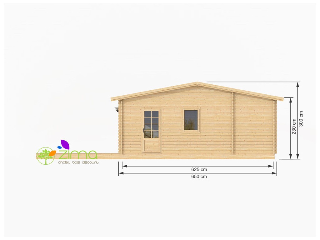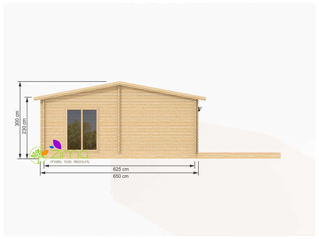 Chalet Nancy 70mm 21,85m2 + mezzanine 20m2 au sol, mur en madriers 70 mm