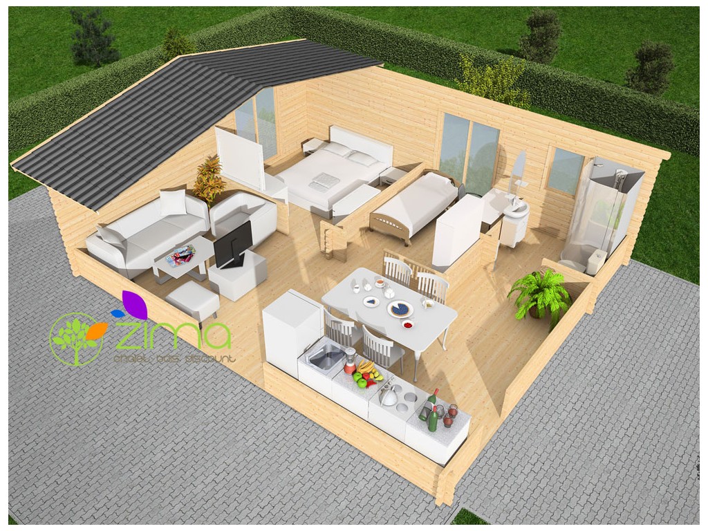 Options de Construction : Madriers Massif 34 + Bardage Madriers Massif 34 + Isolation + Bardage Madriers Massif 44 + Bardage Madriers Massif 44 + Isolation + Bardage Ossature Bois + Bardage Ossature Bois Isolé + Bardage Livraison gratuite Design moderne