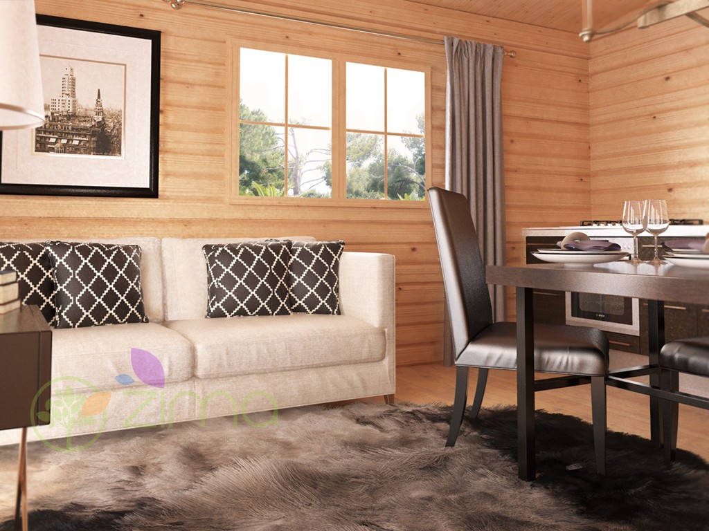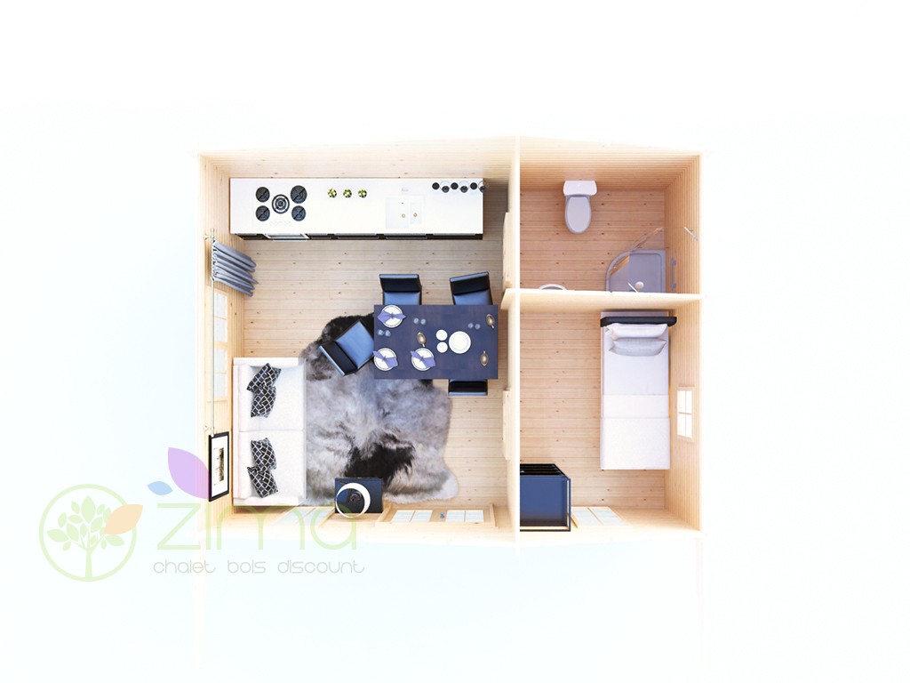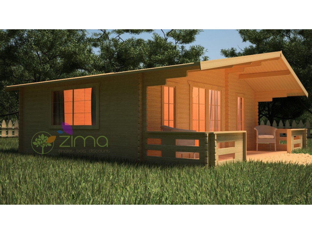 Chalet Nancy 70mm 21,85m2 + mezzanine 20m2 au sol, mur en madriers 70 mm