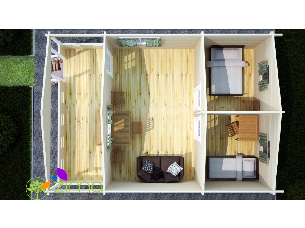 Chalet Nancy 70mm 21,85m2 + mezzanine 20m2 au sol, mur en madriers 70 mm
