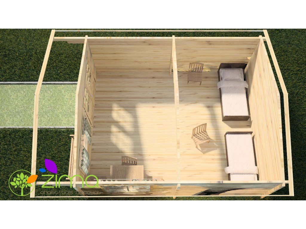 Chalet Nancy 70mm 21,85m2 + mezzanine 20m2 au sol, mur en madriers 70 mm