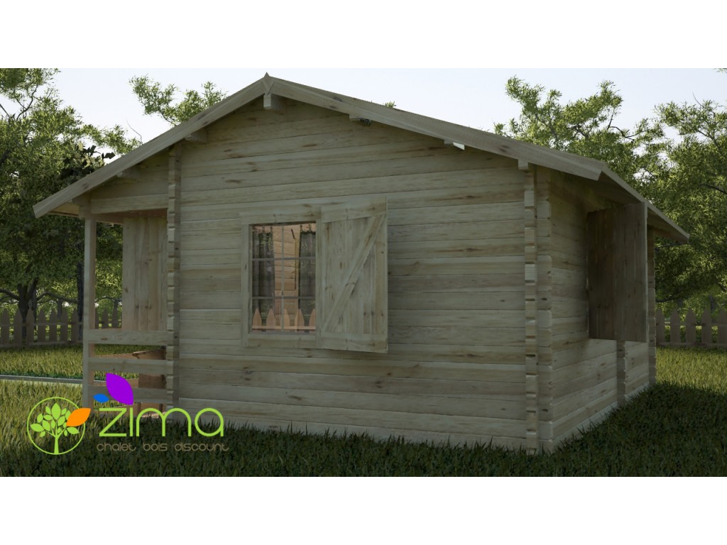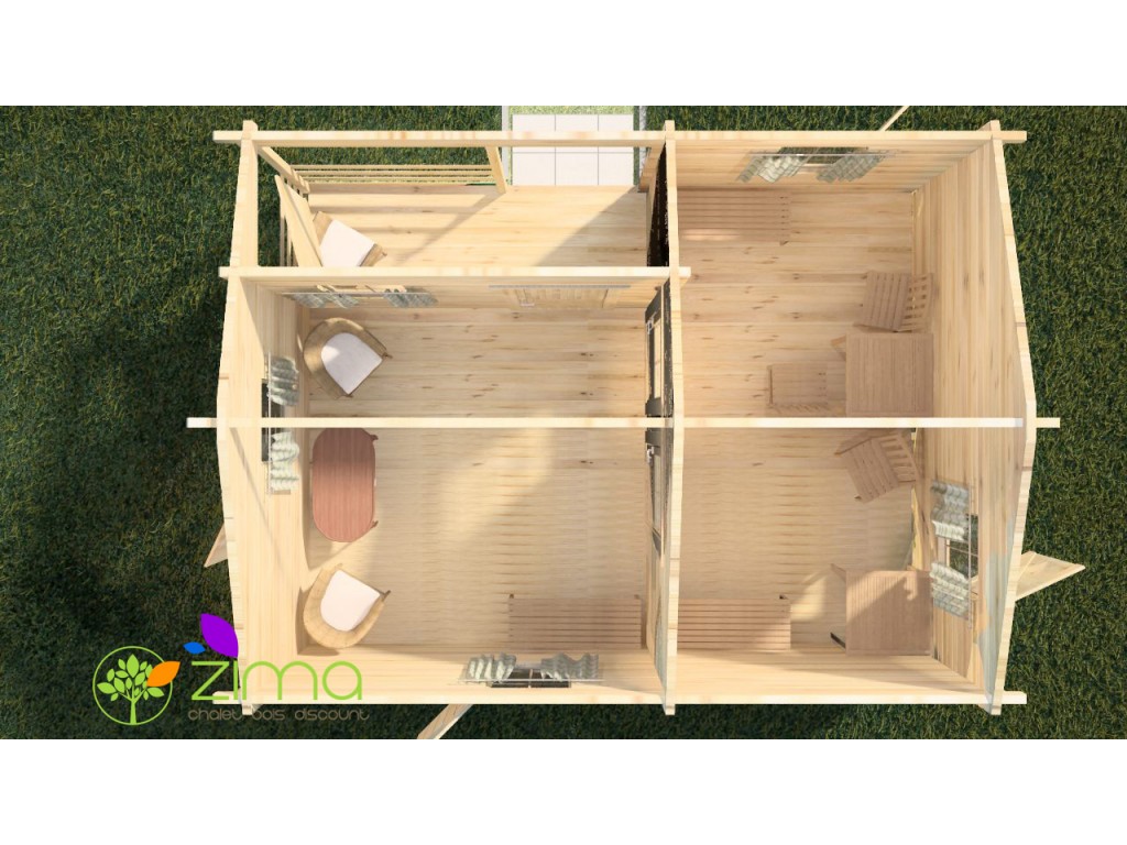 Chalet Nancy 70mm 21,85m2 + mezzanine 20m2 au sol, mur en madriers 70 mm