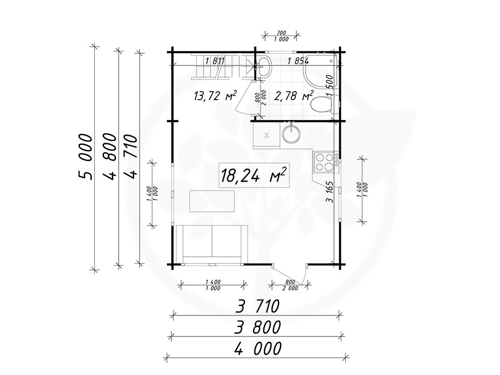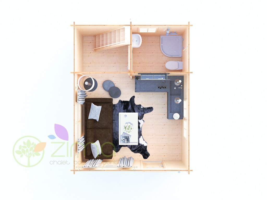 Chalet Nancy 70mm 21,85m2 + mezzanine 20m2 au sol, mur en madriers 70 mm