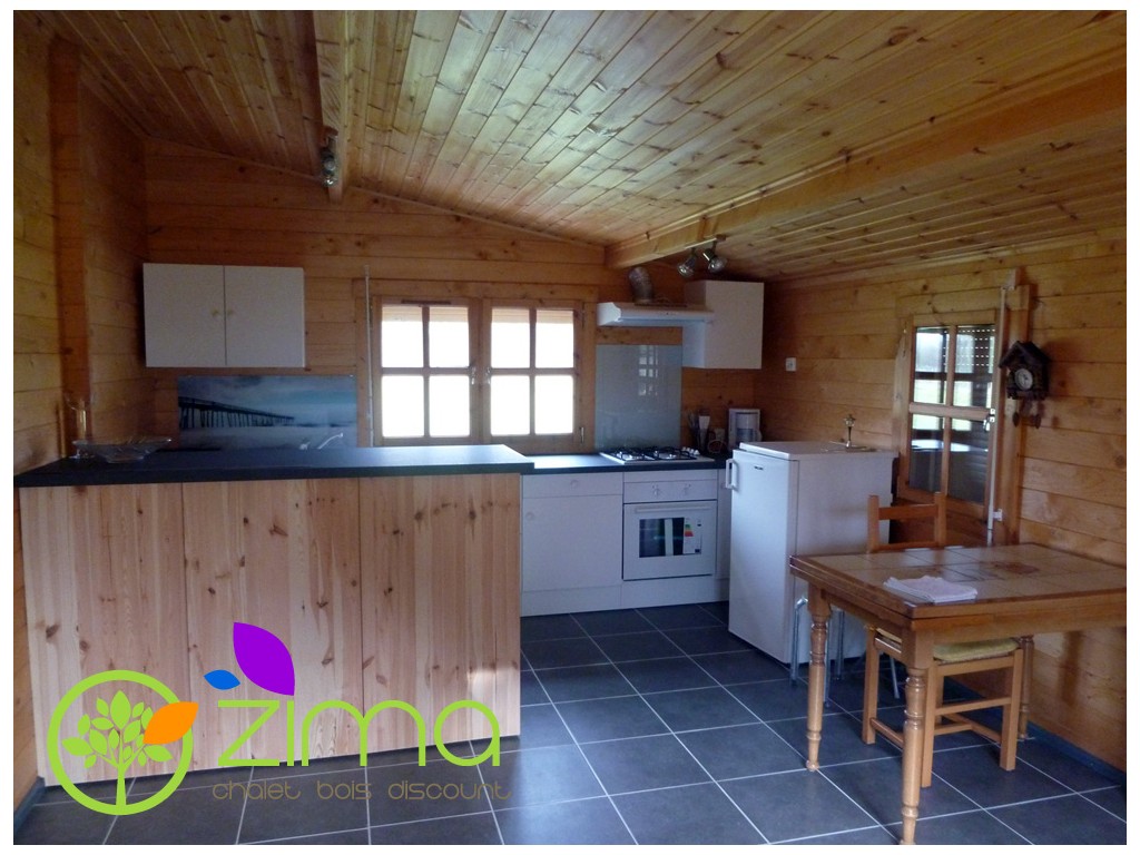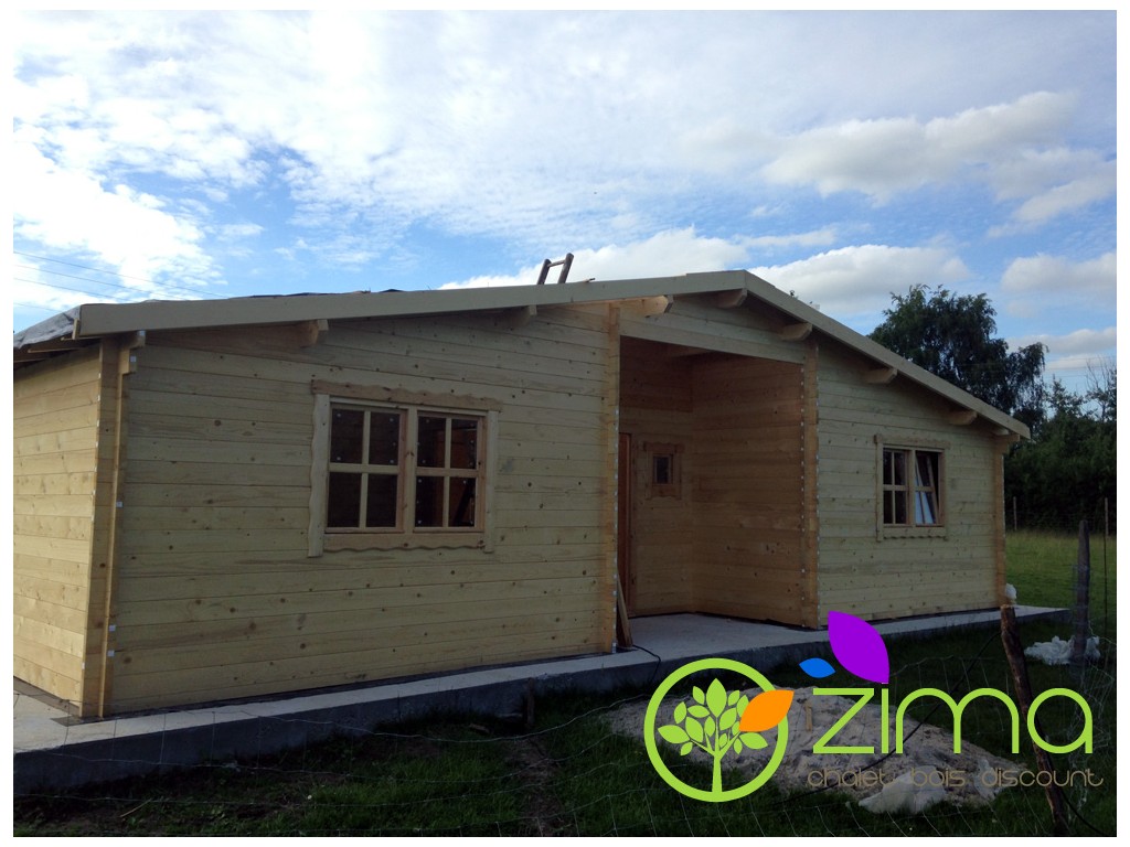 Chalet Nancy 70mm 21,85m2 + mezzanine 20m2 au sol, mur en madriers 70 mm
