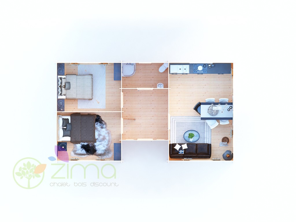 Avec une superficie de 60m², ce chalet Landais comprend deux chambres, une salle de bain et une grande pièce à vivre où vous pourrez partager des moments conviviaux en famille. Le hall d’entrée sera la solution idéale pour ranger chaussures de madame et vous permettra de desservir toutes les pièces et préserver le coin nuit du bruit du séjour. Vos enfants pourront ainsi dormir tranquillement lorsque vous serez dans le salon. Conçu en pin massif, les murs épais et le double vitrage vous protégeront au fil des saisons. Par ailleurs, les grandes ouvertures présentes dans chacune des pièces offrent une grande luminosité.