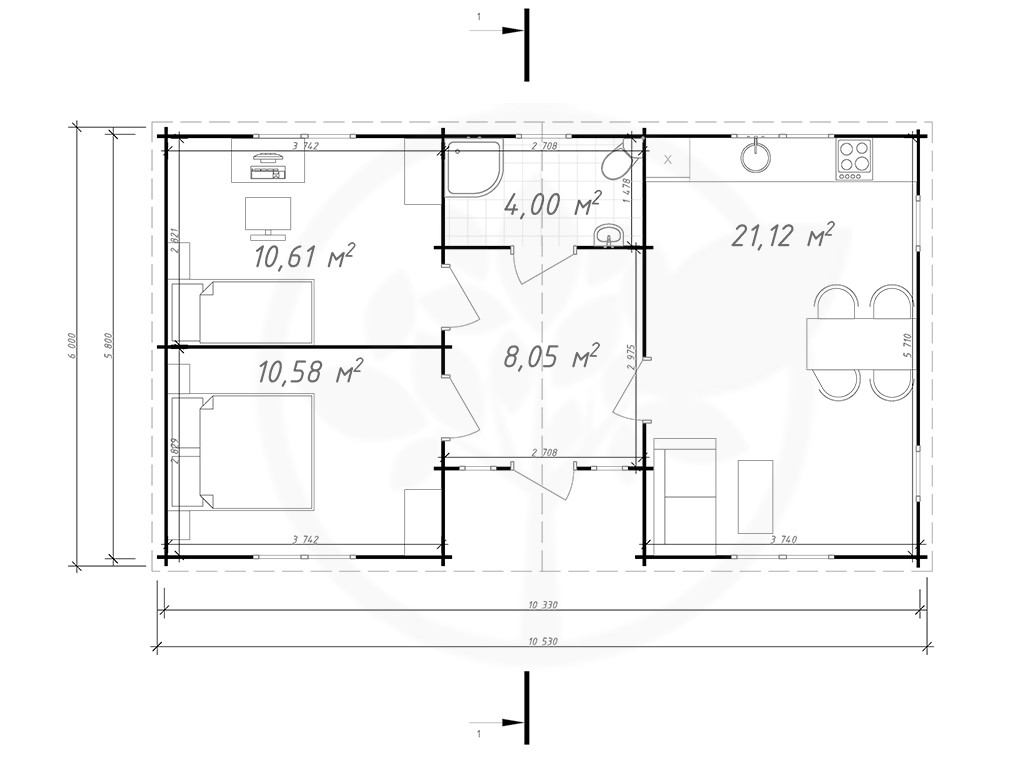 | Dimensions intérieures (largeur x profondeur): | 1030cm x 577cm |