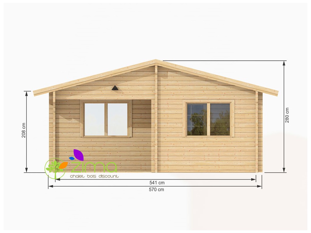 Chalet Nancy 70mm 21,85m2 + mezzanine 20m2 au sol, mur en madriers 70 mm