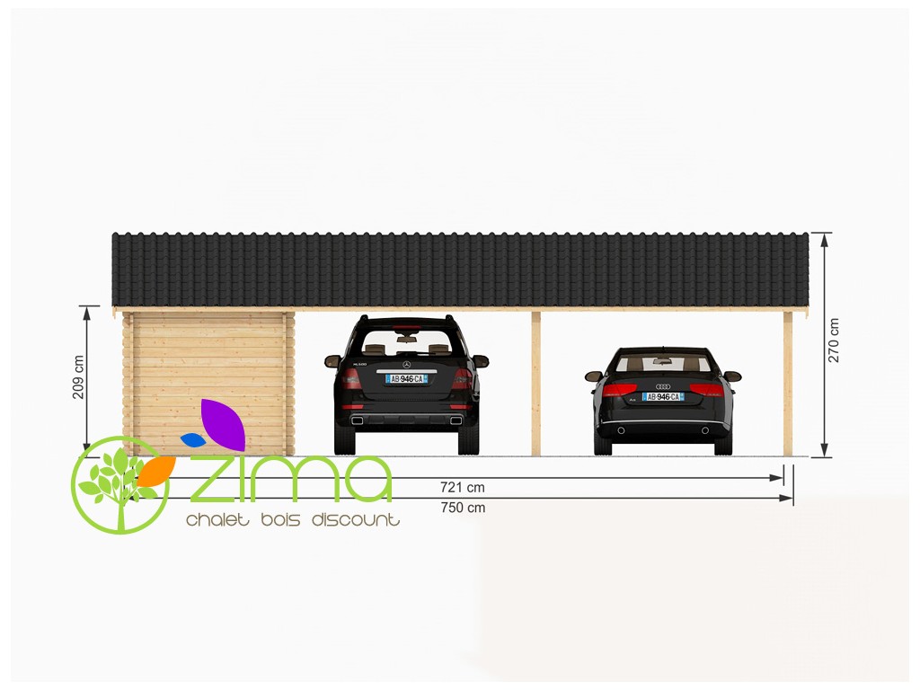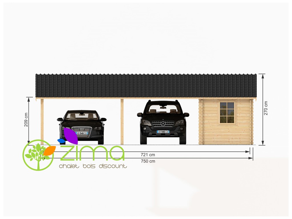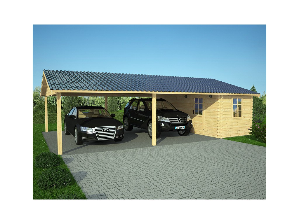 Les indécis seront ravis ! Ce modèle unique en son genre regroupe à la fois un carport et un abri de jardin pour une surface totale de 45m².