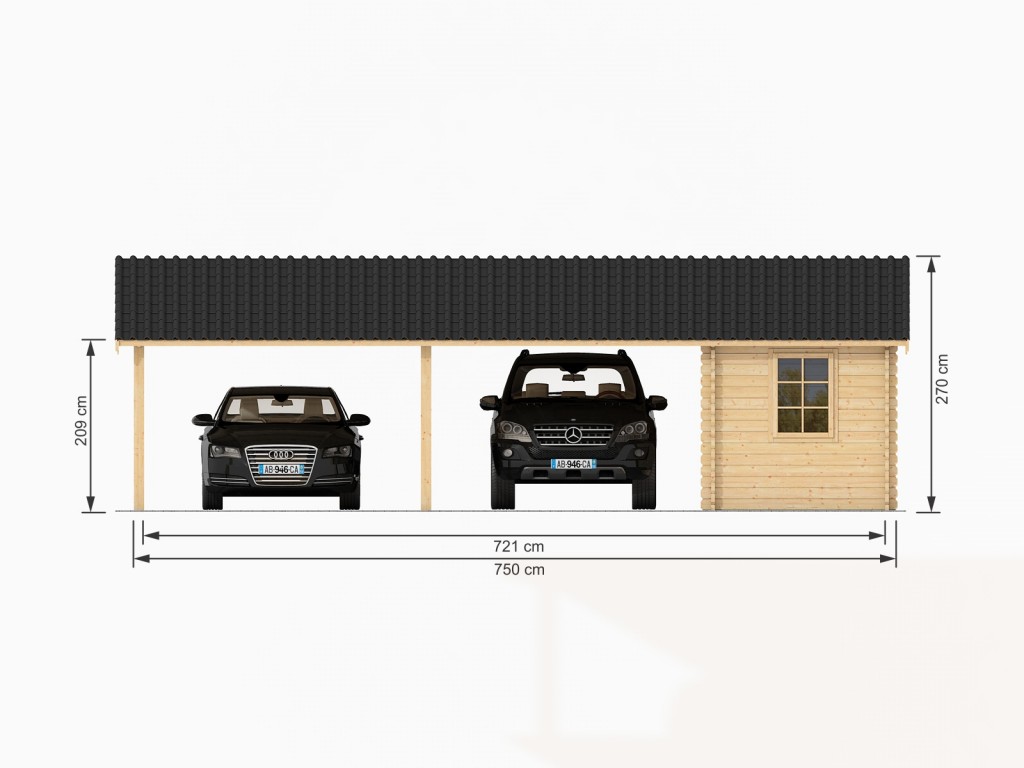 Cet ensemble permet de garer été comme hiver deux voitures ou même un bateau. Son abri attenant sera l’endroit idéal où stocker tous vos outils, les bricoleurs pourront eux y voir un atelier où travailler.
