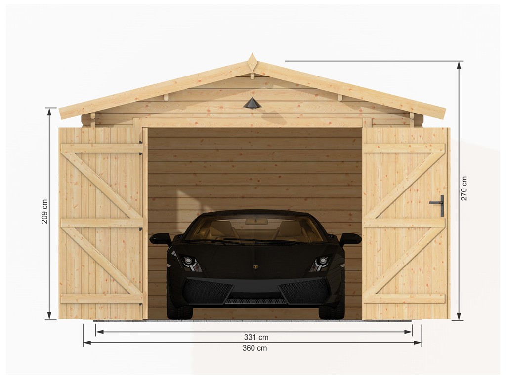 Simple et authentique, ce garage en bois est également robuste, afin de garer en toute sécurité votre véhicule. Son épaisseur de 45mm ainsi que le double vitrage présent sur les fenêtres et la porte latérales offre une très bonne isolation thermique. Le garage se transforme alors en une véritable pièce supplémentaire que l’on peut utiliser été comme hiver. La large ouverture centrale de taille standard offre la possibilité de fixer les portes de votre choix