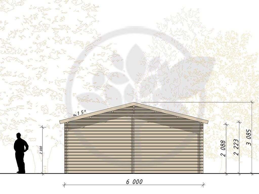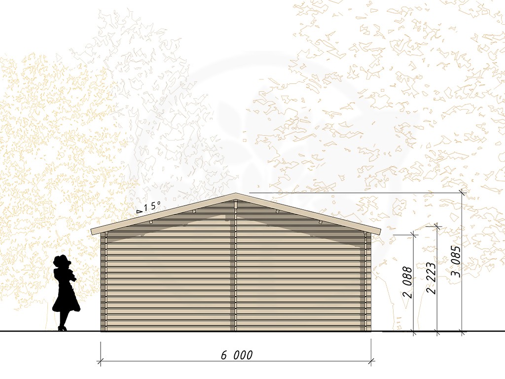 Non fourni - à commander séparément + 550 euros / un. Porte de garage en bois à double battants (bois brut) ou porte de garage basculante en acier blanc |