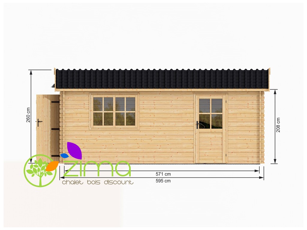 Sa structure en bois massif se démarque par sa simplicité et sa robustesse. Par ailleurs, les fenêtres double vitrage et l’épaisseur de 45mm en font un endroit idéal pour faire face aux intempéries. L’ouverture centrale permet de fixer des portes de dimension standard et offre un accès facile.