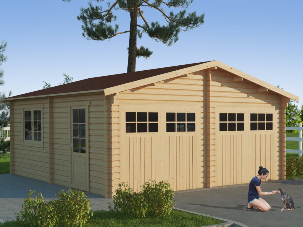 Le garage en madriers massif de 36m² avec ses 2 portes est la solution idéale, que vous soyez un bricoleur du dimanche ou un professionnel. Grâce à sa structure robuste en pin du Nord, ce garage résiste aux intempéries et vous offre une isolation thermique de qualité grâce à son épaisseur de 44mm et ses fenêtres double vitrage.