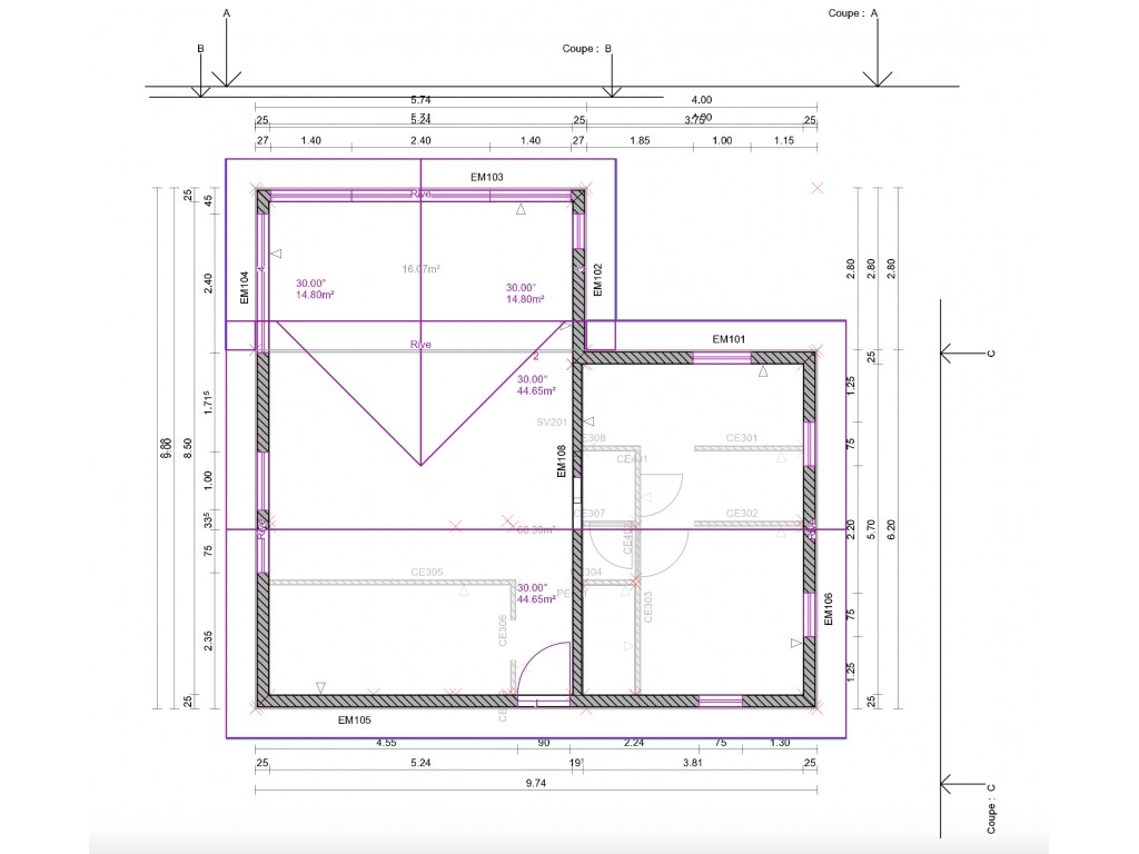 Pente: 30° (Pent toiture modifiable)