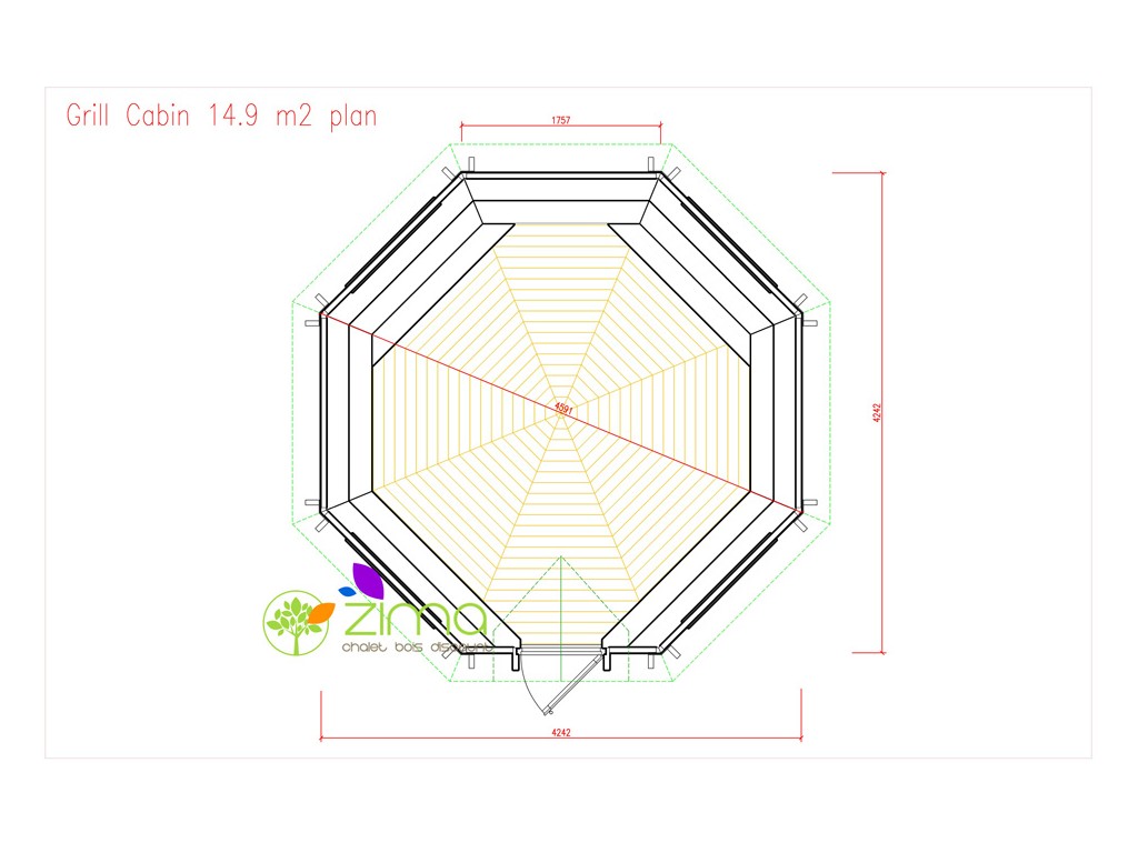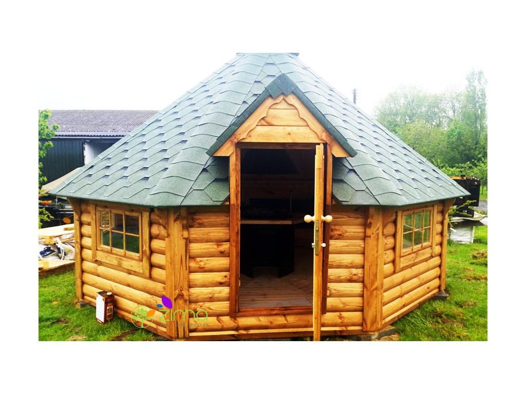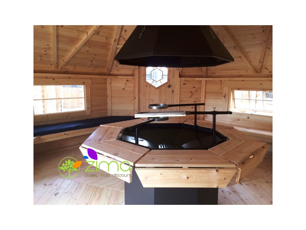 Chalet kota grill 16,5 m2 ouvert - Madriers demi rondins de 45mm