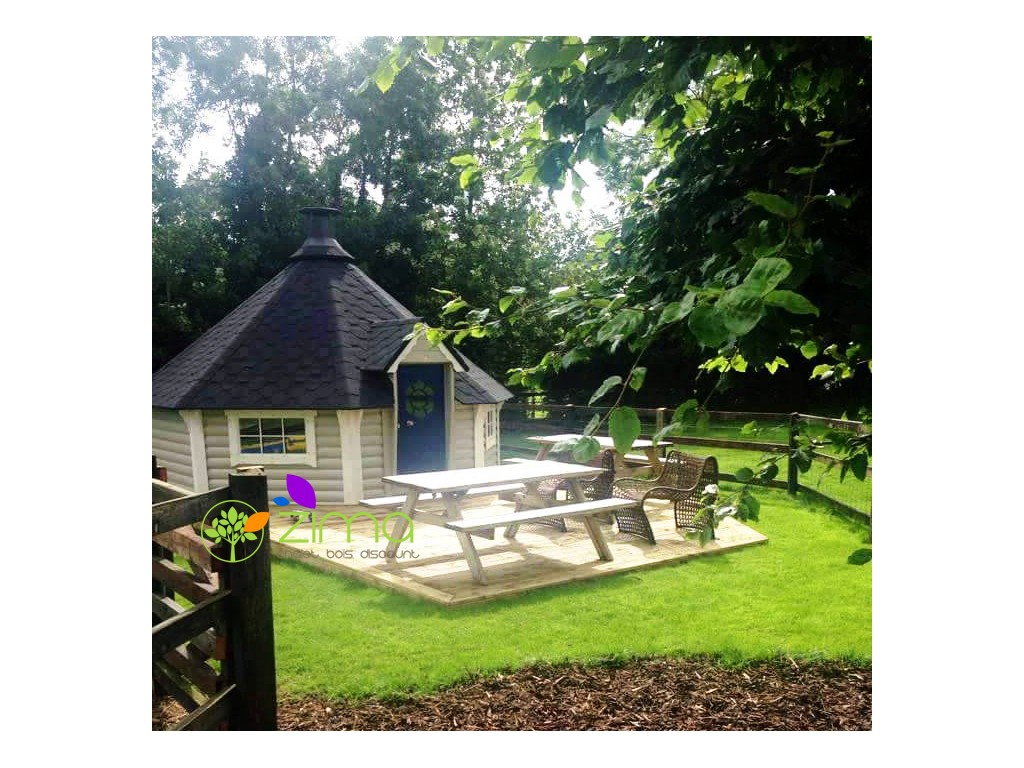 Chalet kota grill 9.2m2 ouvert - Madriers demi rondins de 45mm
