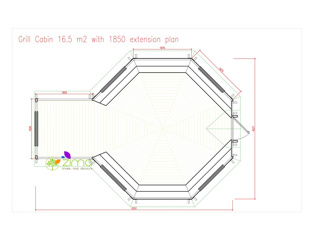 Chalet kota grill 16,5 m2 ouvert - Madriers demi rondins de 45mm