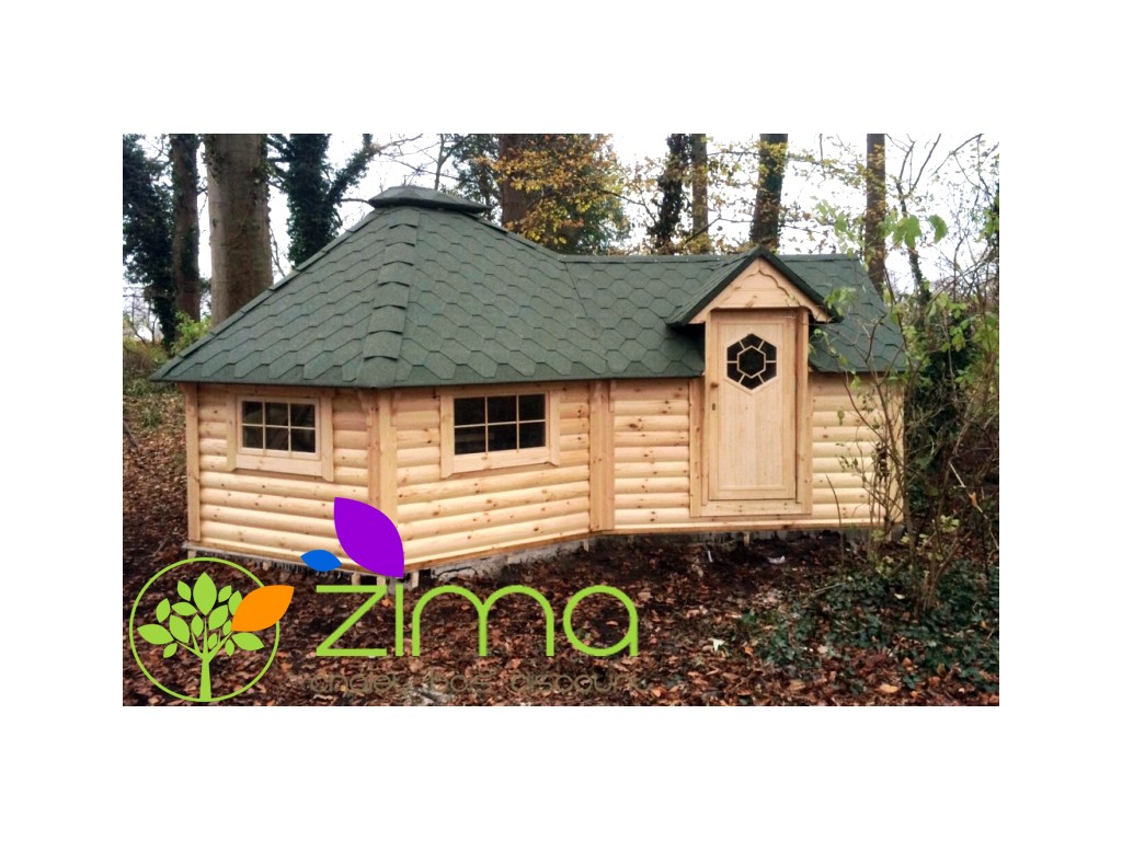 Endroit de détente, il offrira tout le confort du bois en vous préservant des variations thermiques toute l’année grâce à sa structure en pin massif et ses fenêtres double vitrage. Ce kota de 9.2m² s’organise autour d’un grill avec lequel pourrez cuisinez de bons repas pour tous vos proches. Par ailleurs, une table de forme octogonale vous permettra de profiter en toute quiétude d’un espace où manger. Les quatre banquettes sont fournies avec des coussins, deux d’entre-elles sont transformables et permettront à vos amis de rester dormir après un bon festin. Le plus de ce chalet est l’extension aménageable à votre guise en espace détente, lieu de rangement ou espace de stockage.