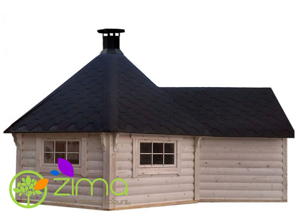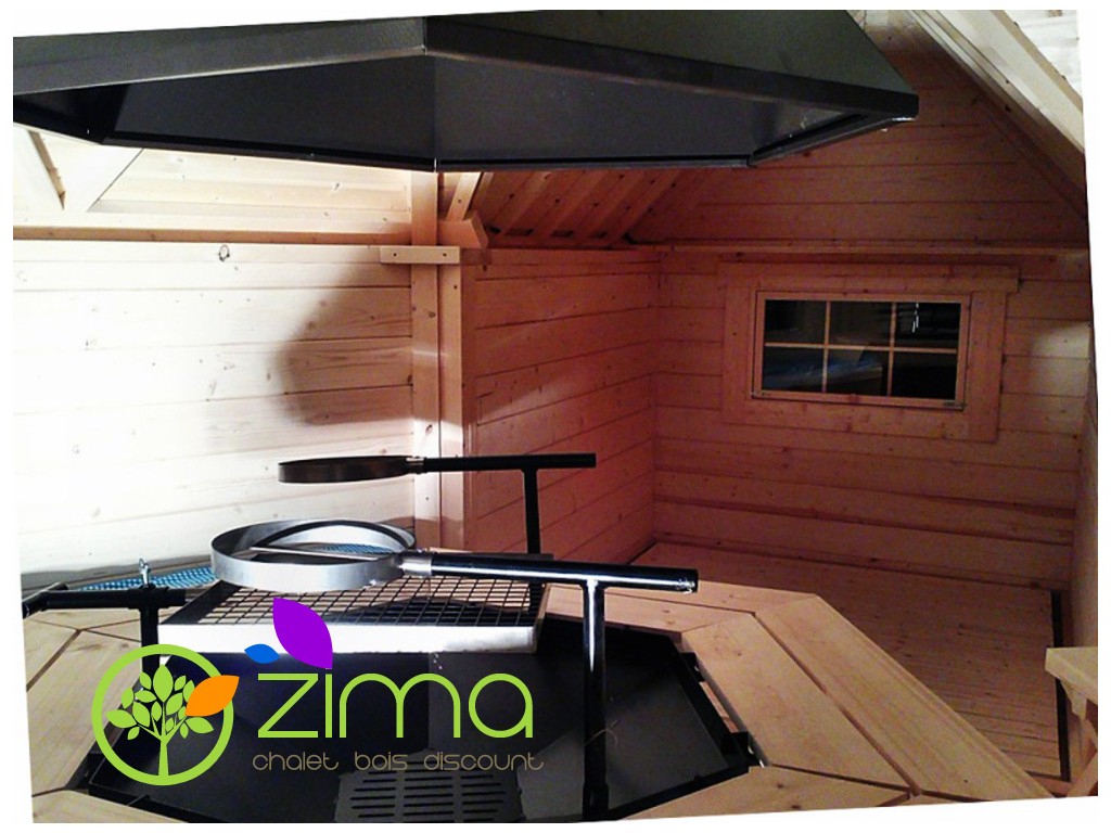 Chalet kota grill 16,5 m2 ouvert - Madriers demi rondins de 45mm