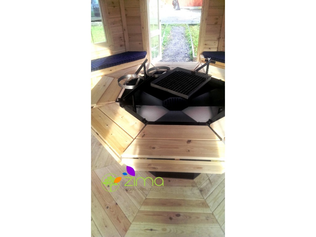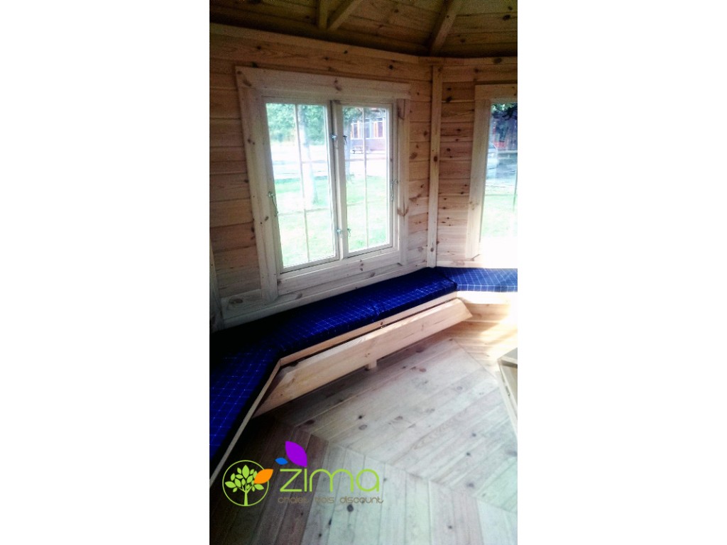 Avec son architecture oscillant entre pavillon de la renaissance et chalet traditionnel finlandais, cette gloriette va donner des airs de Versailles à votre jardin. Pouvant accueillir 15 personnes sur sept banquettes confortables agrémentées de coussins doux et moelleux, ce kiosque va devenir votre nouvel espace privilégié. Livré avec un très beau grill, vous pourrez y partager des repas en toutes saisons ou simplement vous y détendre au calme. Chacun de ses murs est équipé d'une fenêtre double vitrage (sept au total), sa porte est également vitrée ainsi vous bénéficierez d'une vue panoramique sur votre jardin tout en restant bien au chaud. Trois des fenêtres s'ouvrent pour vous laisser respirer le bon air frais extérieur. De plus, deux banquettes sont convertibles en couchage ainsi vous pourrez accueillir des amis ou tout simplement passer une nuit originale dans votre jardin.