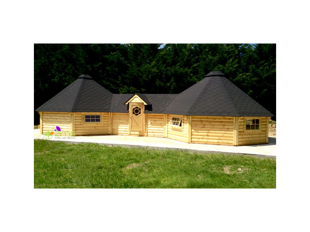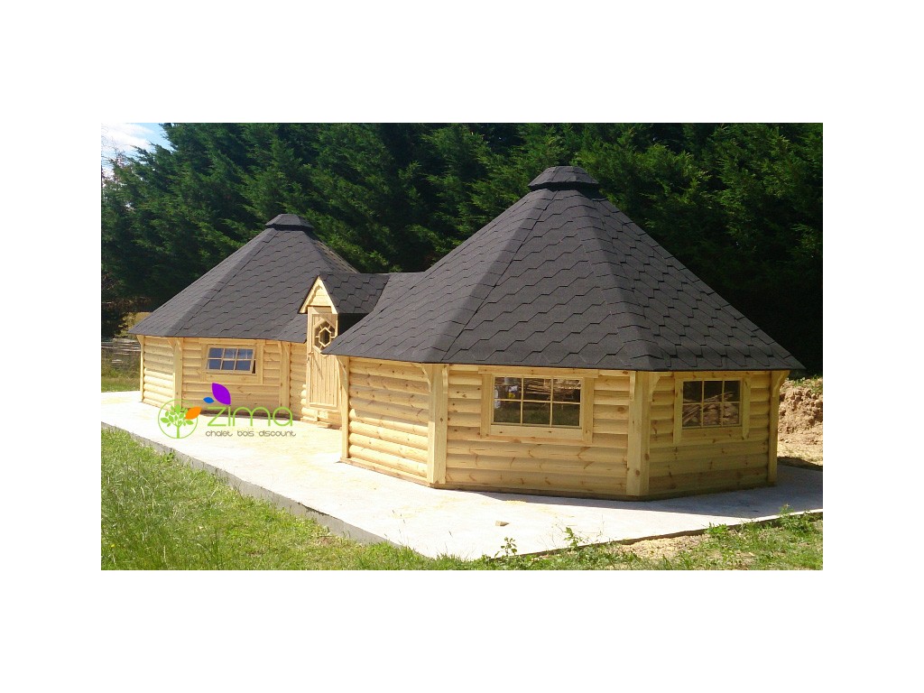 Chalet kota grill 16,5 m2 ouvert - Madriers demi rondins de 45mm