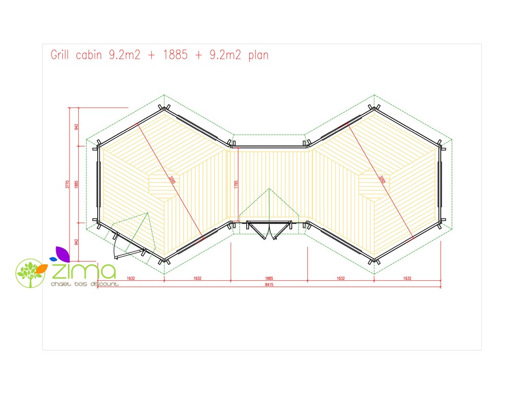 Chalet kota grill 9.2m2 ouvert - Madriers demi rondins de 45mm