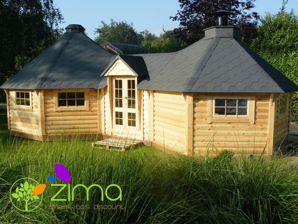 Chalet kota grill 16,5 m2 ouvert - Madriers demi rondins de 45mm