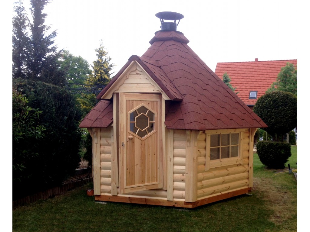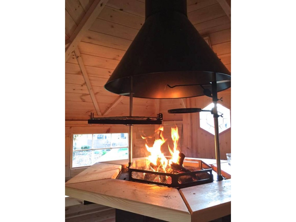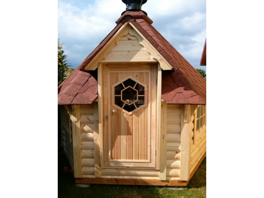 Rendez jaloux tous vos voisins ! Ce superbe kota finlandais se distingue des autres modèles de la gamme par sa forme singulière qui fait penser à la maison du Père Noël. N’oubliez donc pas de mettre vos petits souliers au pied du grill central fourni avec tous ses accessoires afin de mijoter de bons repas pour votre entourage. Ne vous laissez pas avoir par le peu d’espace qu’il occupe dans votre jardin, ce chalet en bois peut accueillir jusqu’à 20 personnes, de quoi réunir toute la famille été comme hiver.