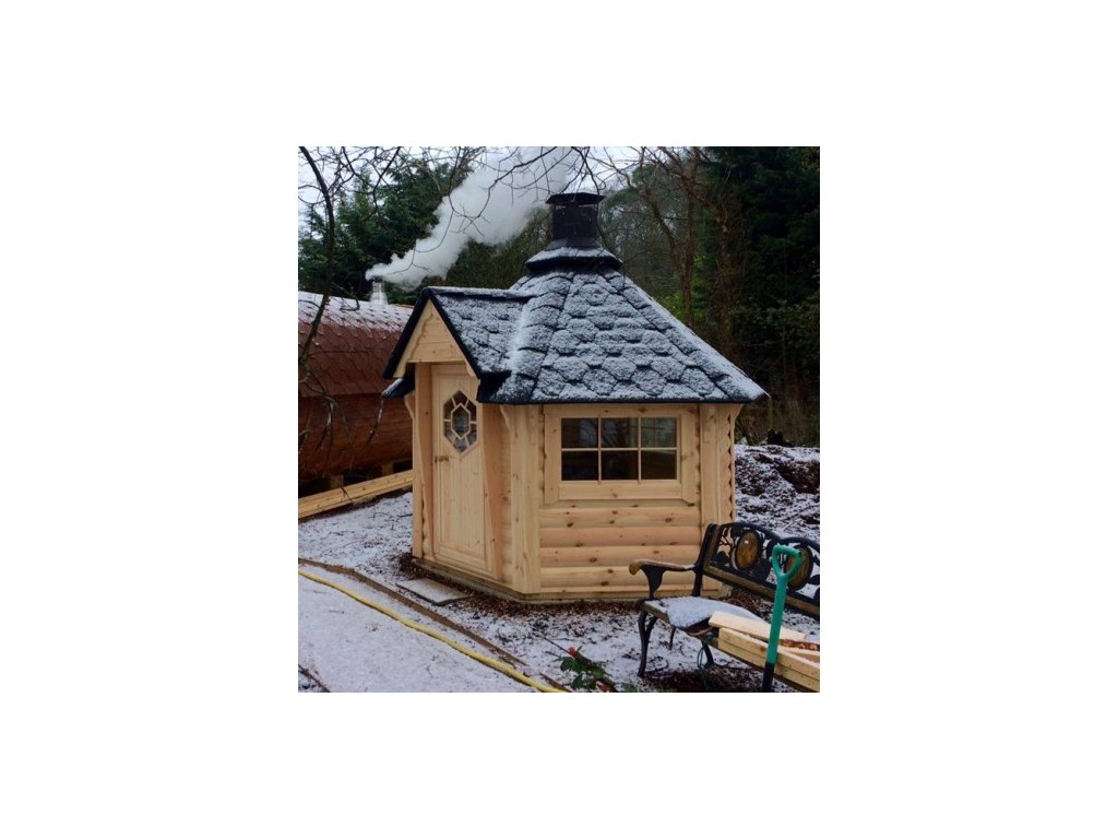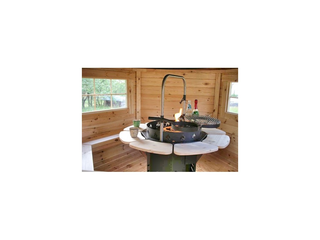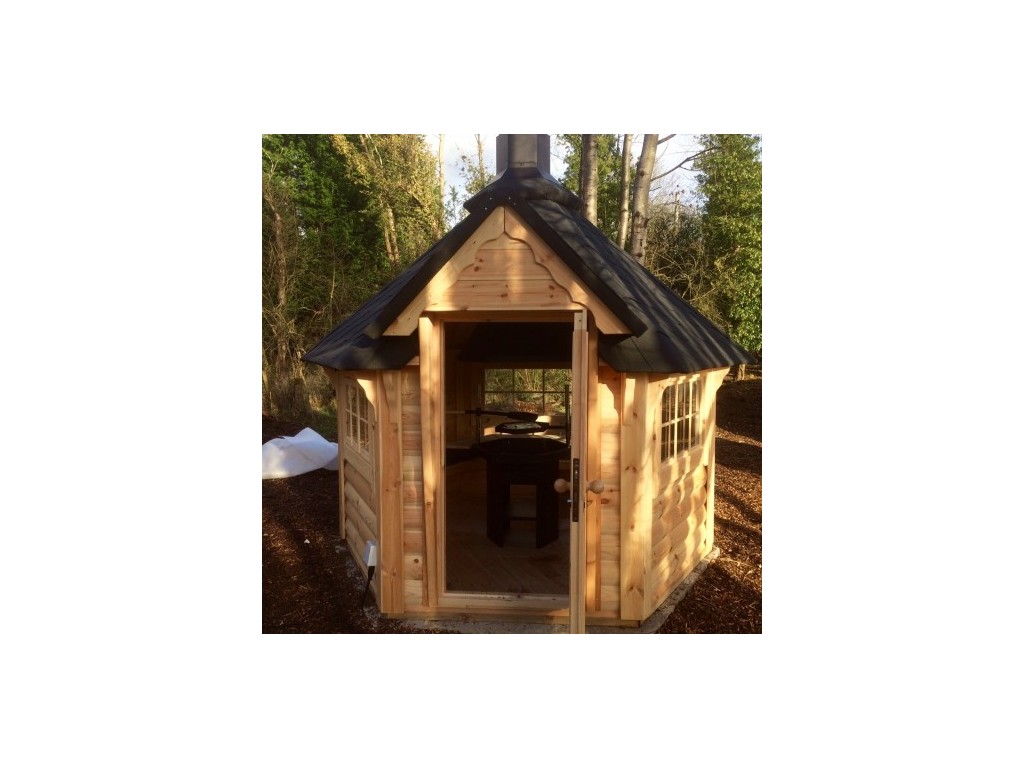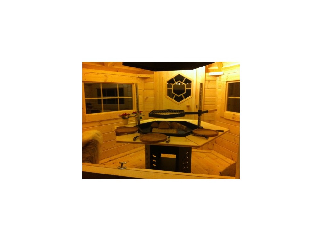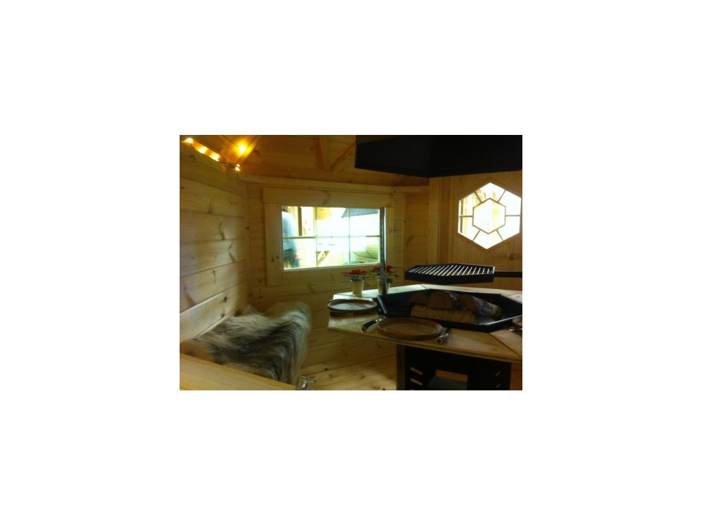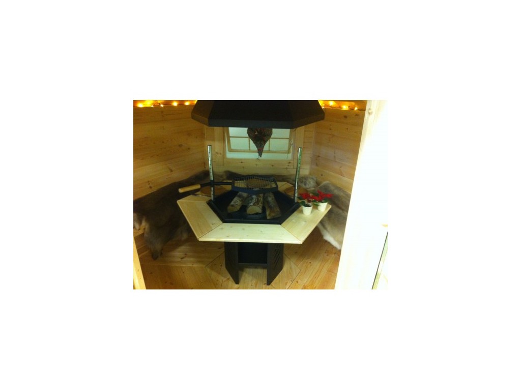 Vous rêvez de barbecue en hiver, de fondue en été, d'un espace convivial où recevoir vos amis ? Ce kota grill de qualité peut vous offrir tout ça. Avec ses 3 banquettes douillettes agrémentées de coussins et pouvant accueillir jusqu'à 5 personnes, ce petit chalet en bois est à la fois chaleureux et accueillant. Livré avec un magnifique grill central et ses accessoires vos repas entre amis seront à coup sur inoubliables. Vous pourrez en profiter le soir mais aussi la journée grâce à ses 3 fenêtres double vitrage apportant clarté et isolation.