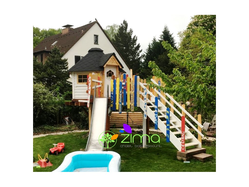 Chalet kota grill 9.2m2 ouvert - Madriers demi rondins de 45mm