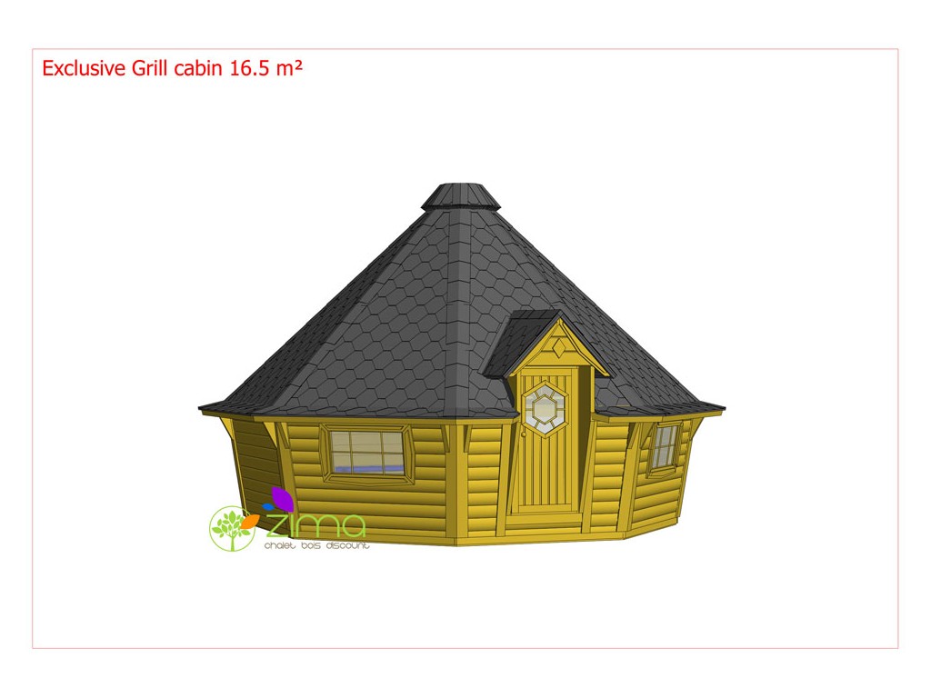 Chalet kota grill 16,5 m2 ouvert - Madriers demi rondins de 45mm