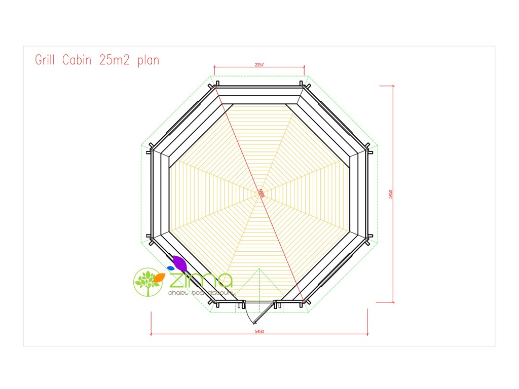 Chalet kota grill 16,5 m2 ouvert - Madriers demi rondins de 45mm