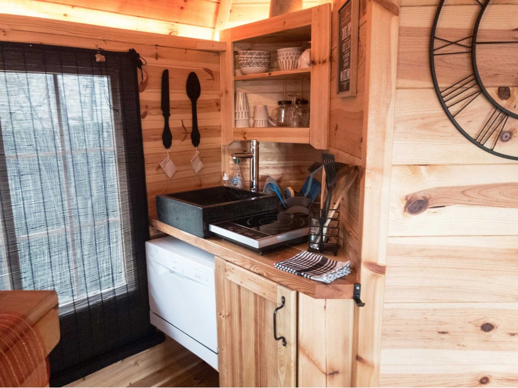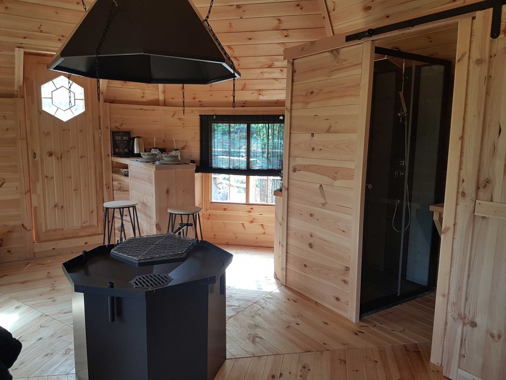 Livré avec le grill, les coussins et les banquettes, (on peut les supprimer - moins-value de 350 euros), ce kota finlandais vous laisse le choix d’aménager à votre guise cette pièce spacieuse. Transformables en couchettes, certaines banquettes offrent un coin nuit où pourront dormir vos amis après un délicieux repas. Cependant sa belle superficie, vous permet également d’en faire un lieu d’accueil, une billetterie ou encore une chambre d’hôtes.