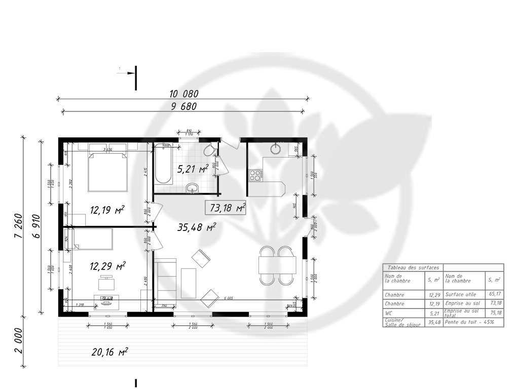 Pente: 36% (Pent toiture modifiable)