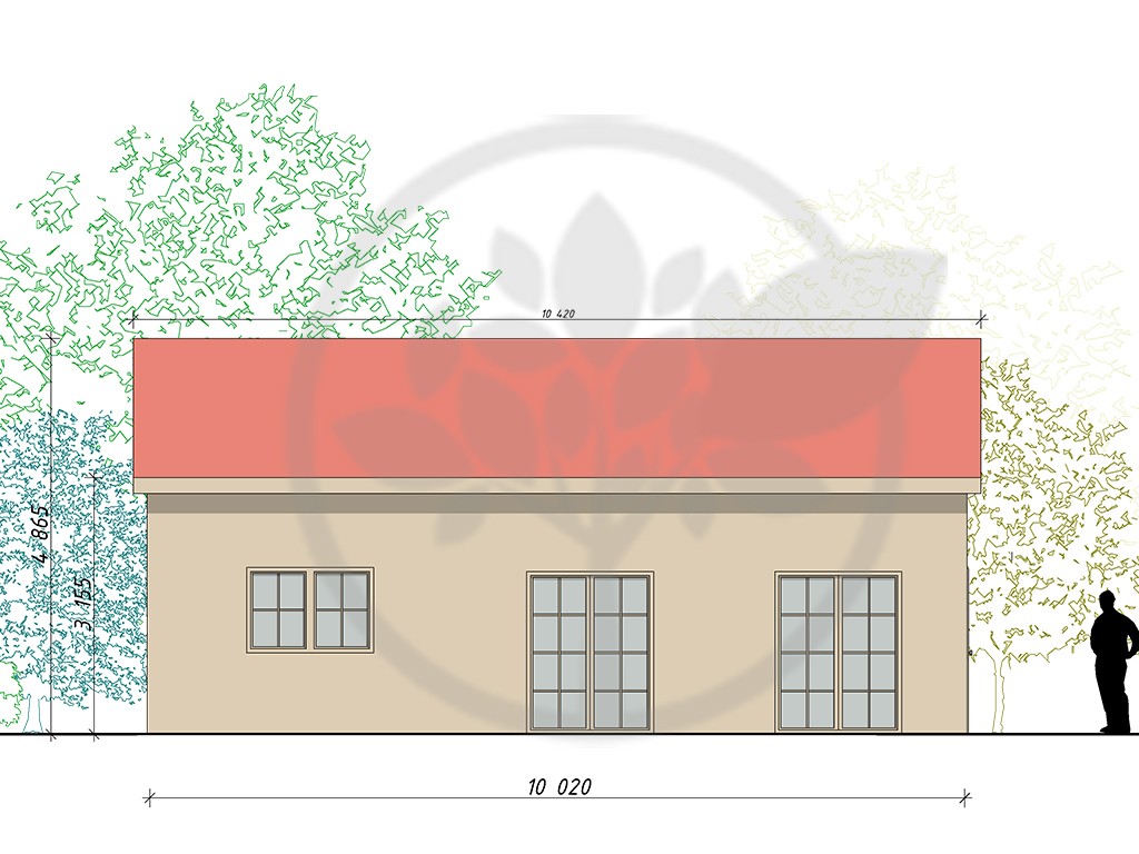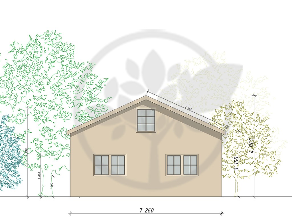 Dépassement du toit sur les côtés / pignons (façade) cm: 50 (modifiable)
