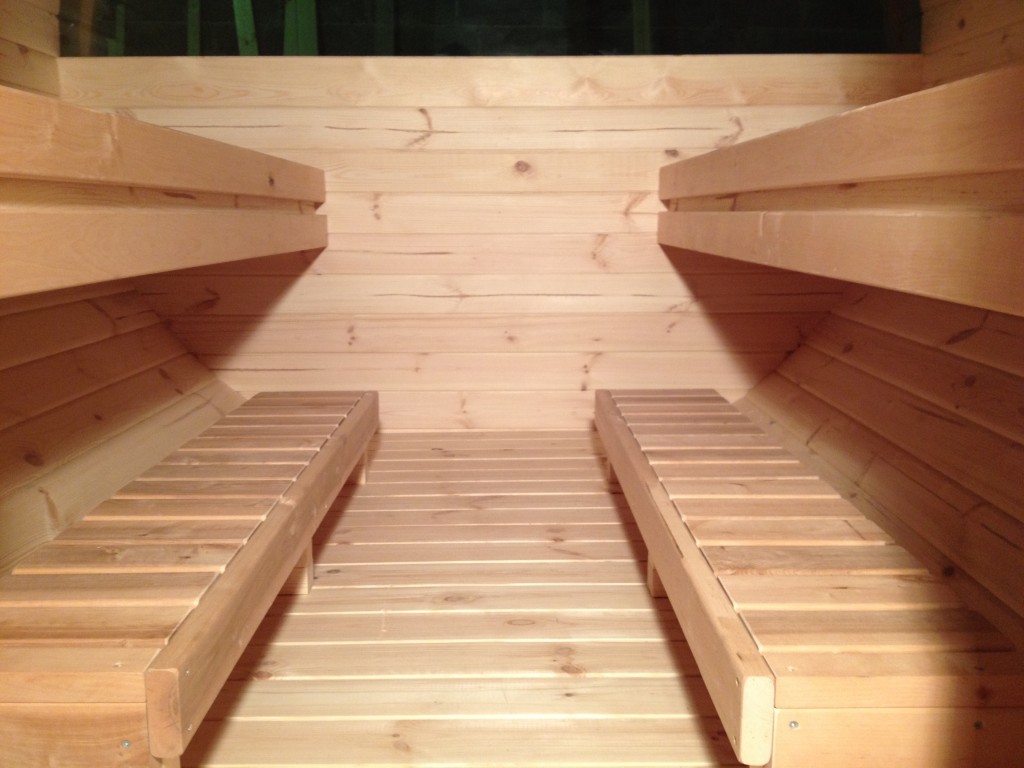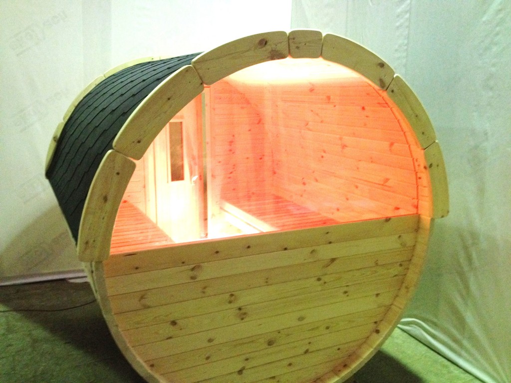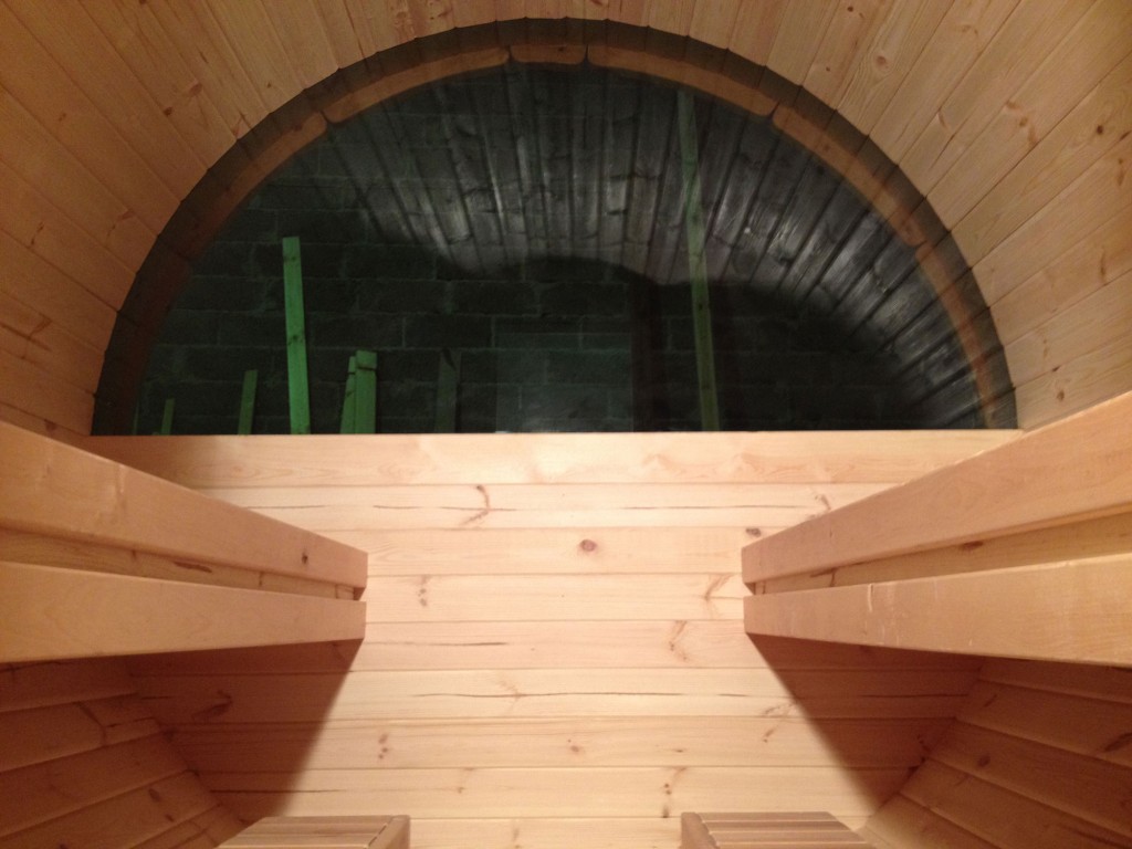 Une vitre en verre tempée de 10 mm d'épaisseur dans la paroi arrière du sauna baril